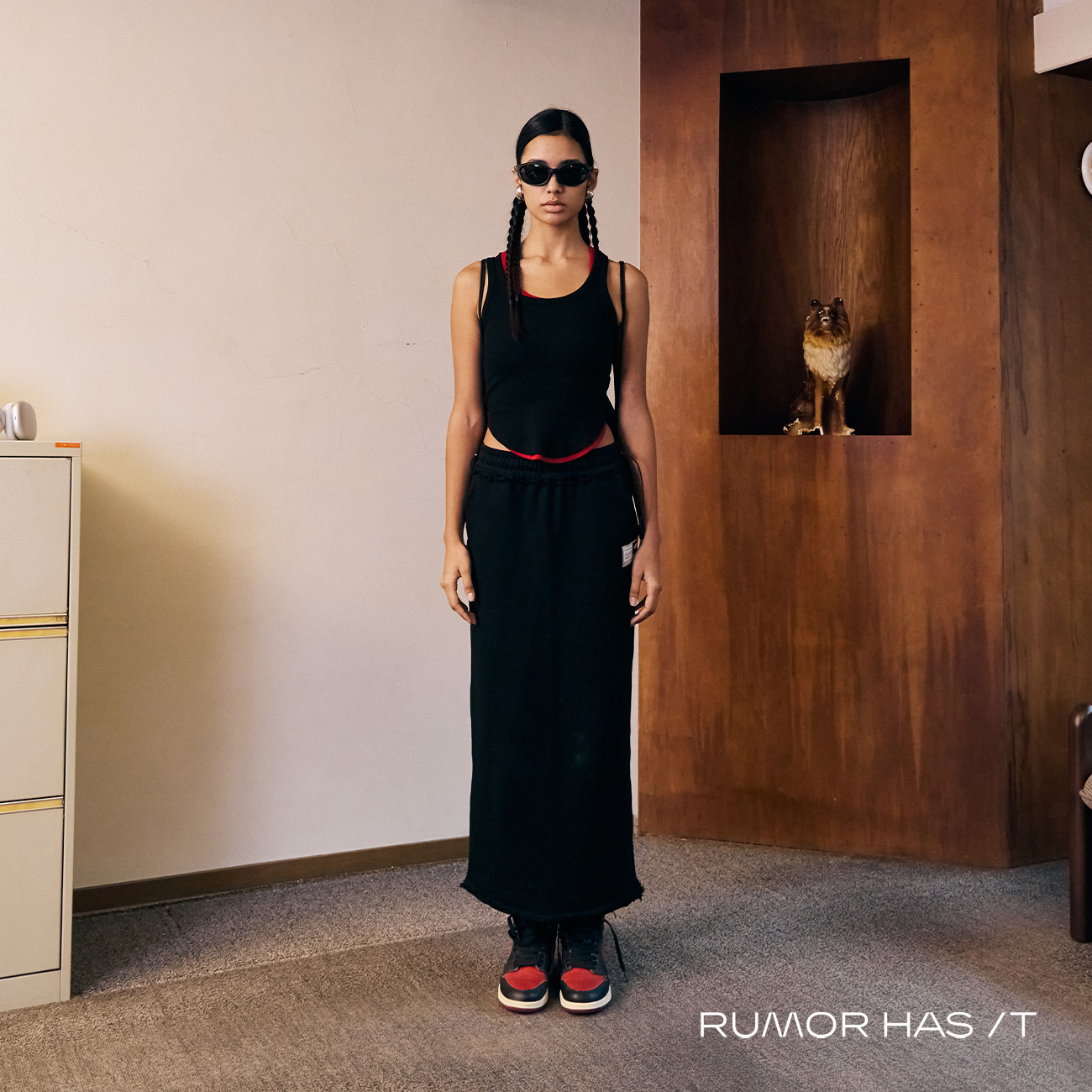 選用厚磅棉質打造一款直筒長裙