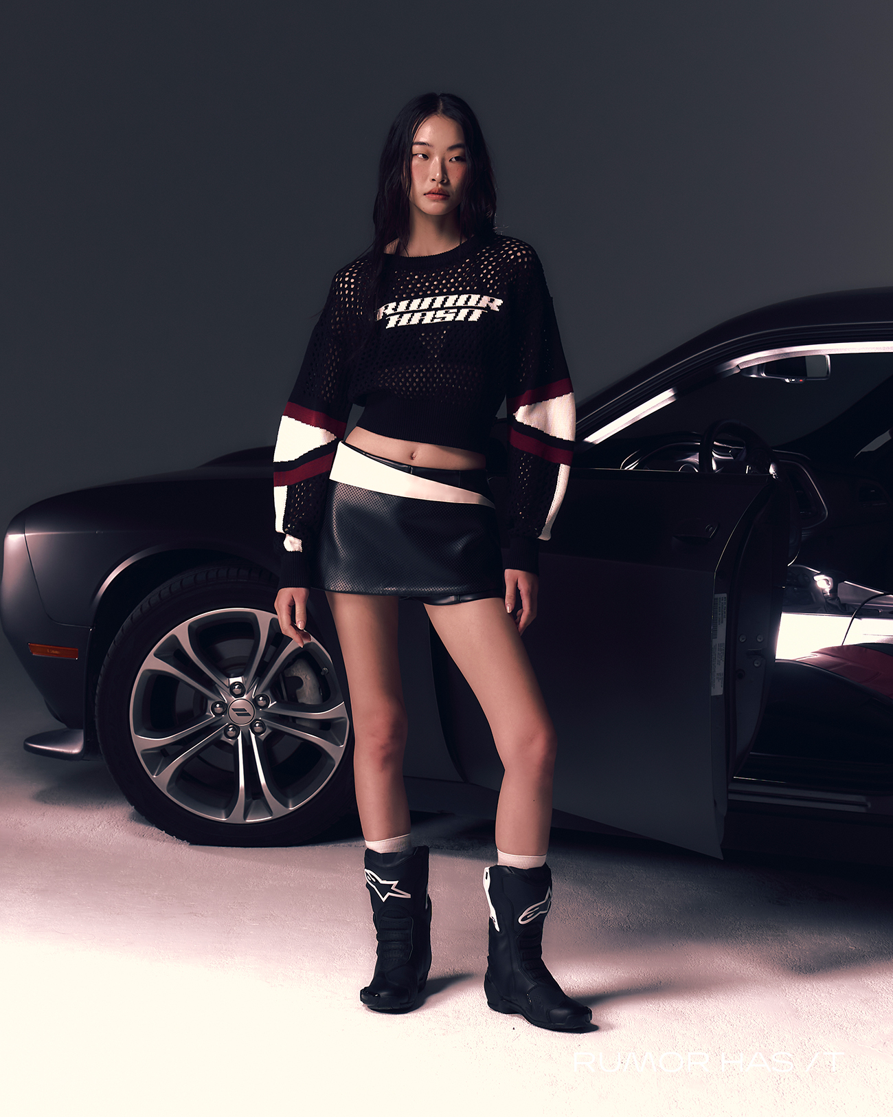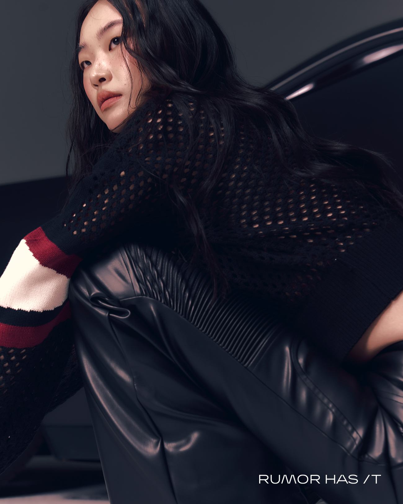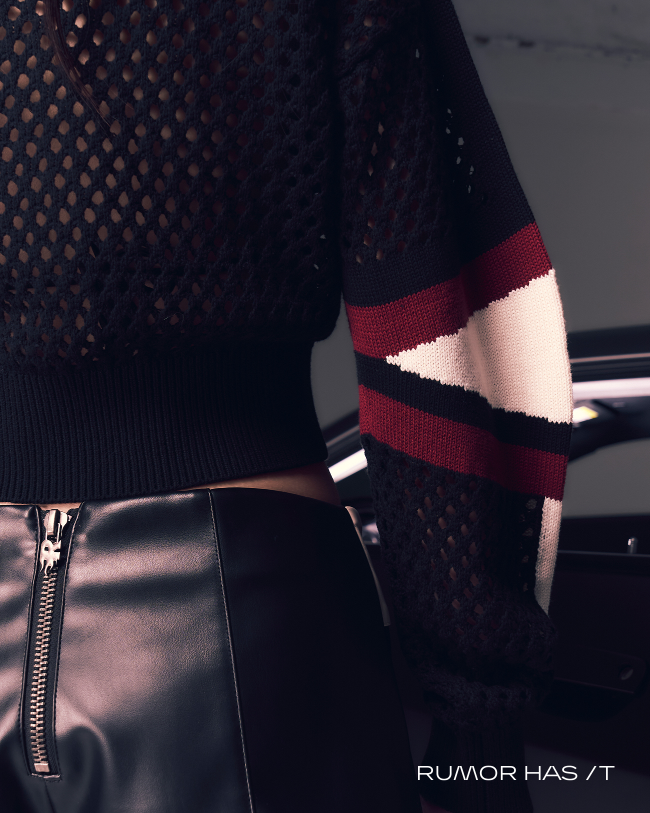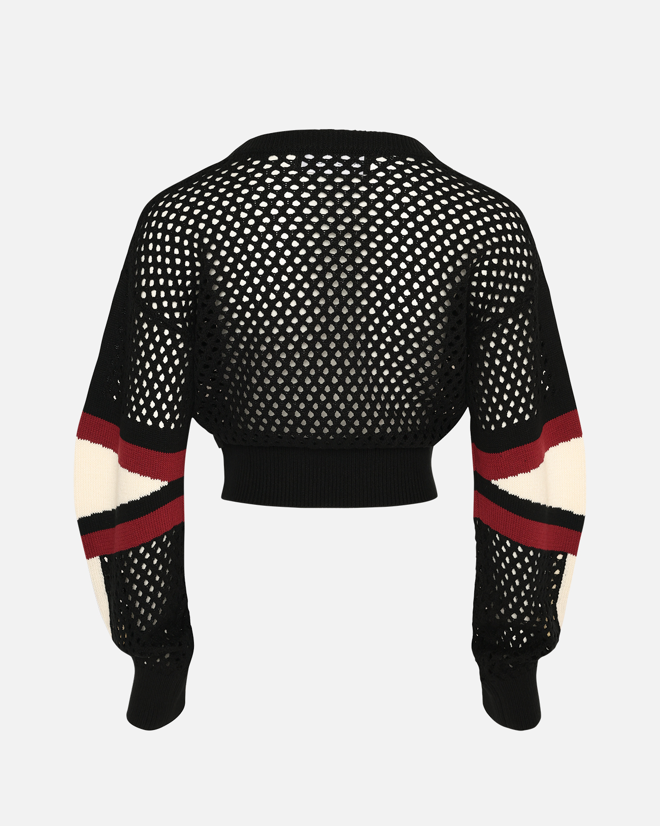 以 open-knit 網眼針織結構,搭配品牌拿手的短版版型