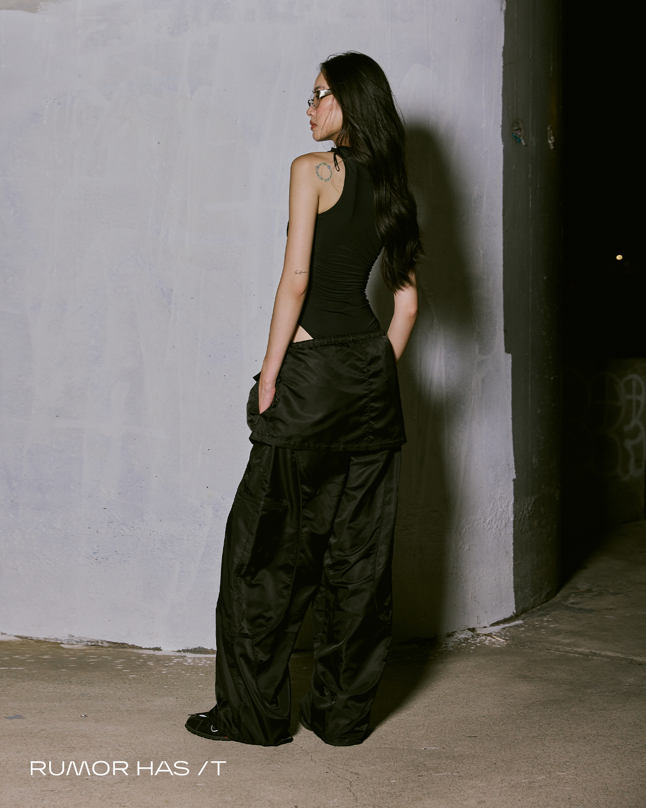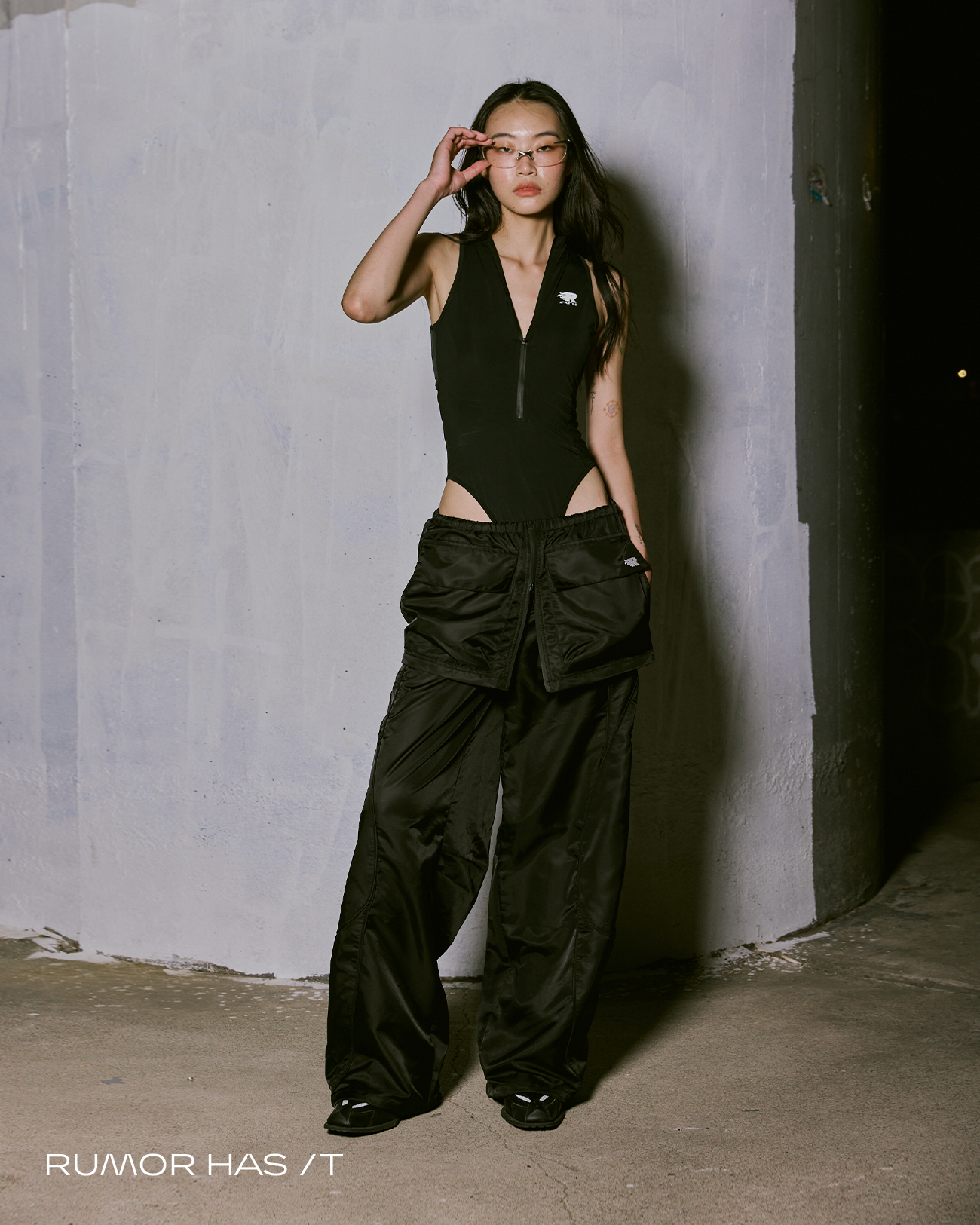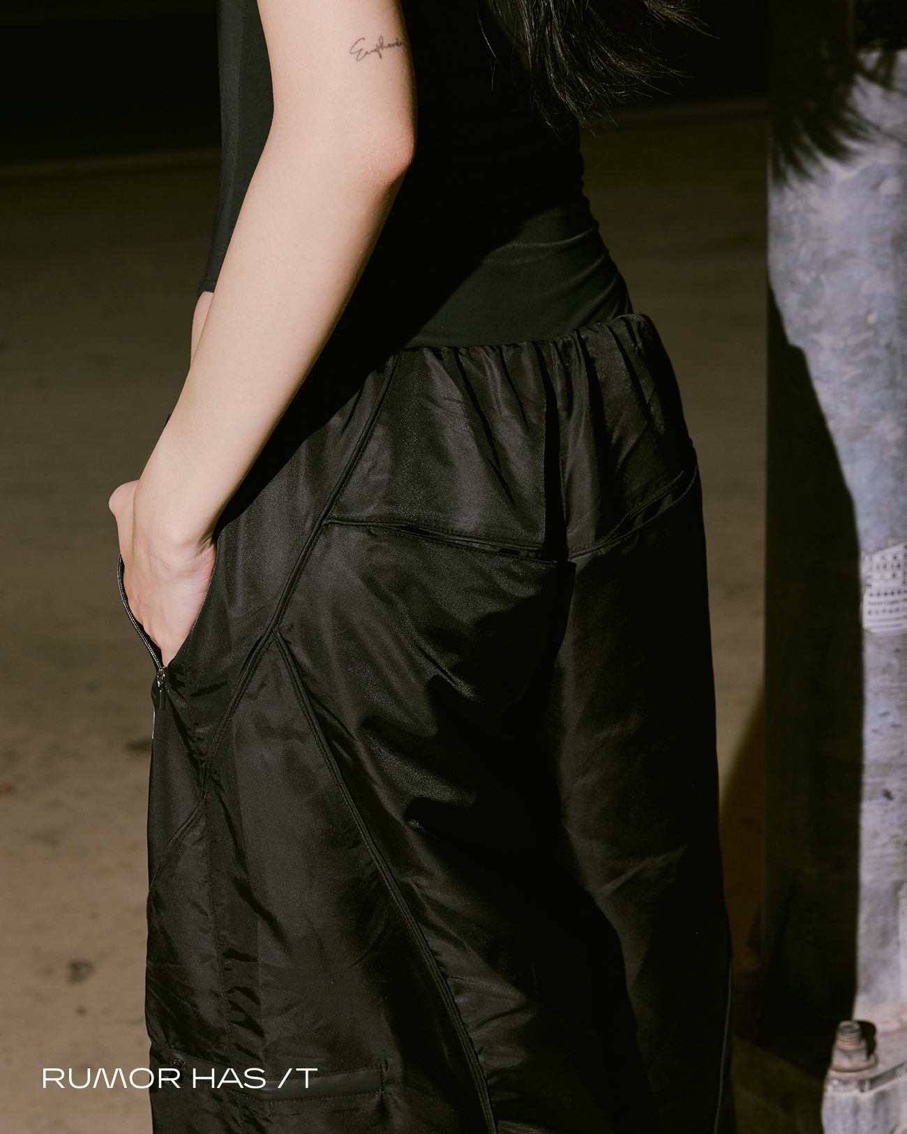 選用帶有光澤感的尼龍布料,打造一組多變化的最強下半身。
