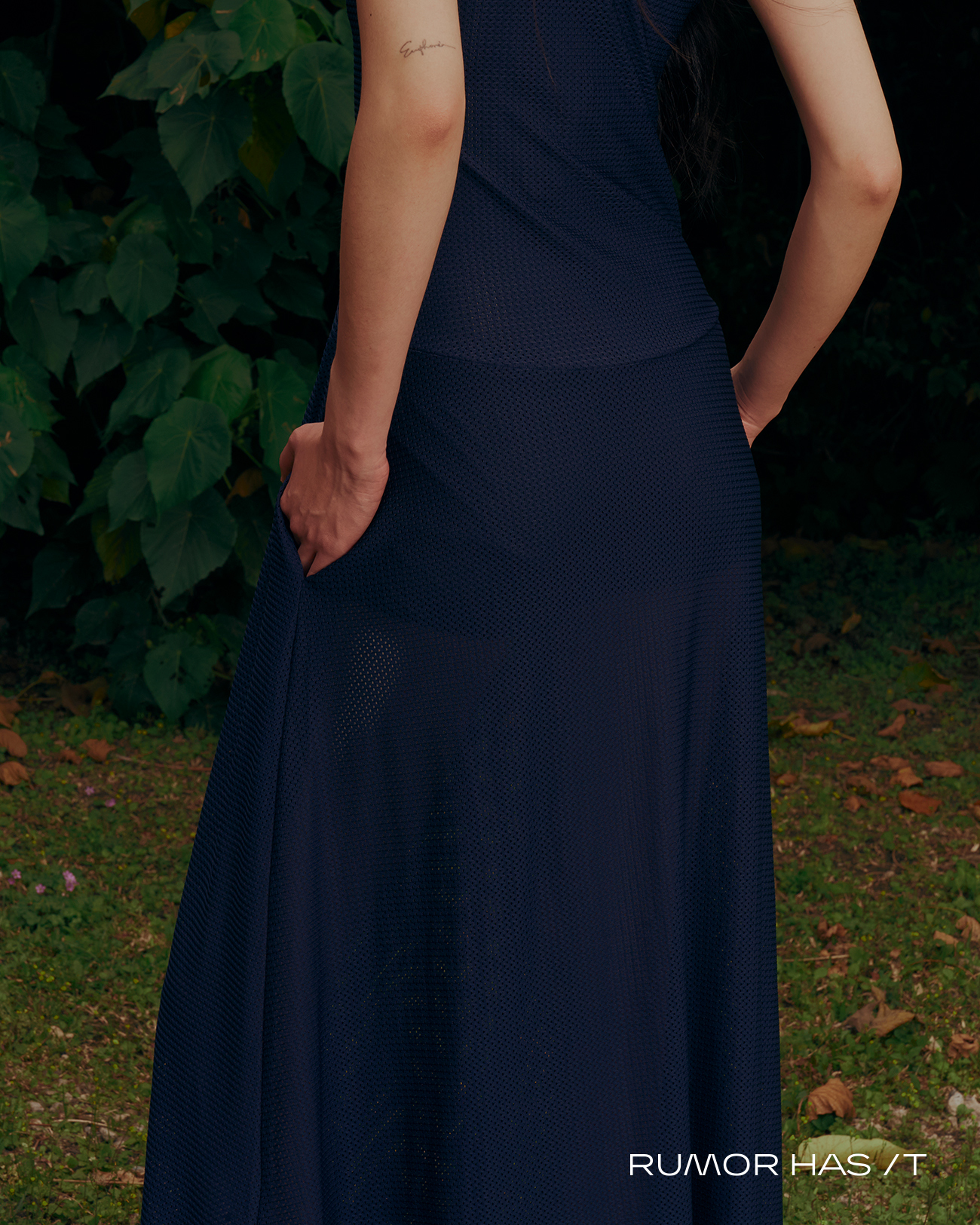 善用布料的垂墜度打造飄逸又輕透的裙擺,隨著身體的擺動展現若隱若現的層次感。