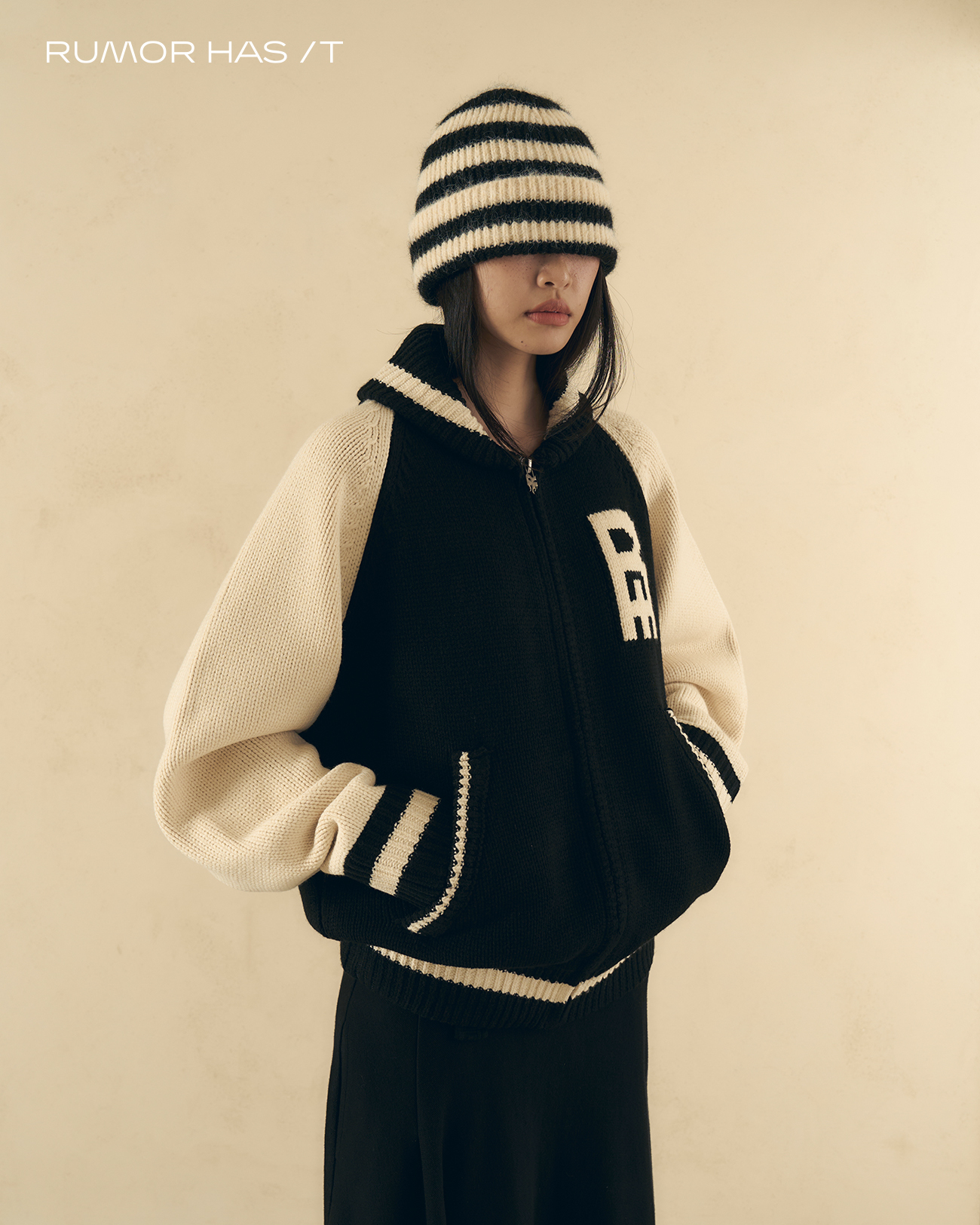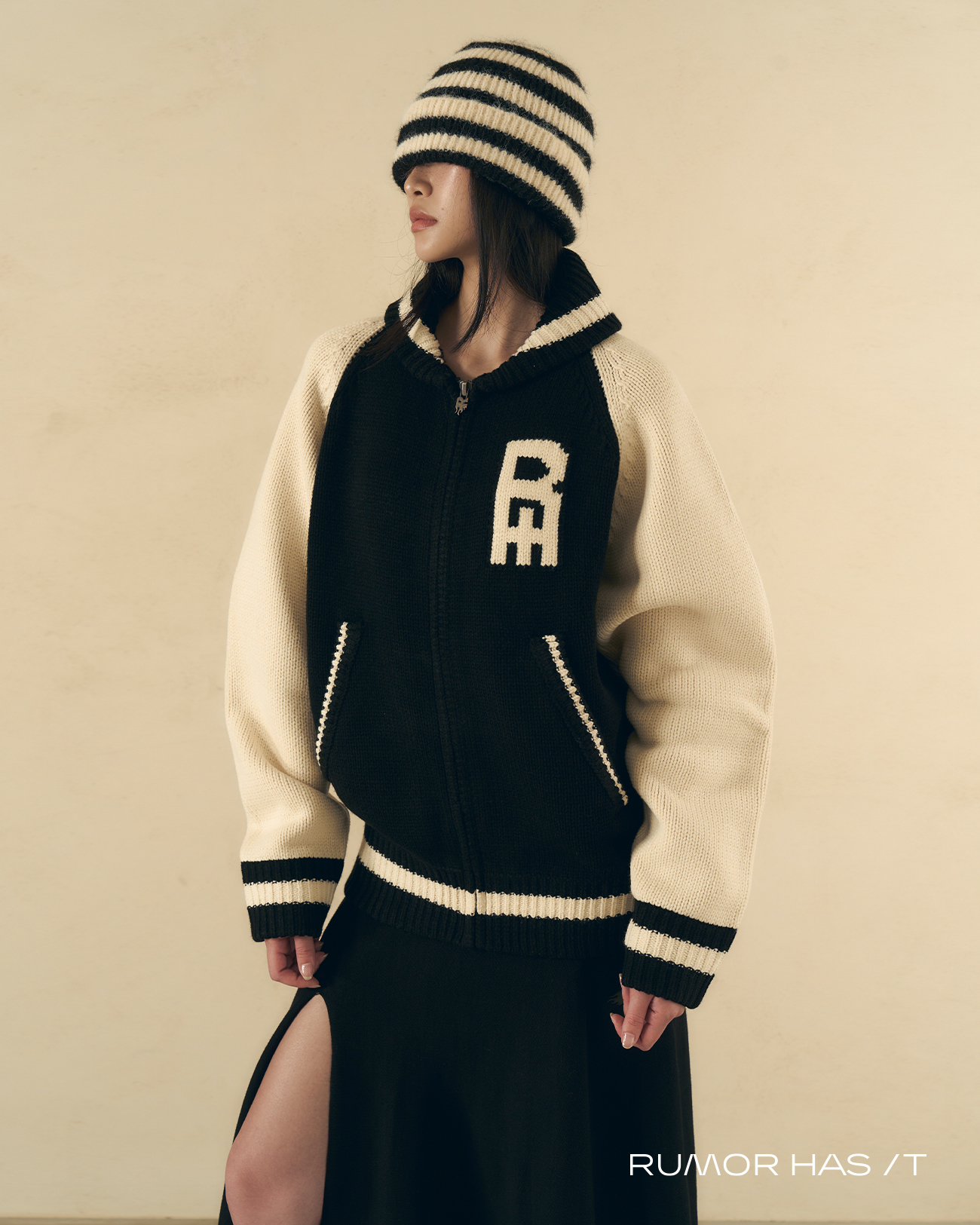 以 Varsity Jacket 為靈感,改以針織面料打造更輕盈的日常穿著感受。