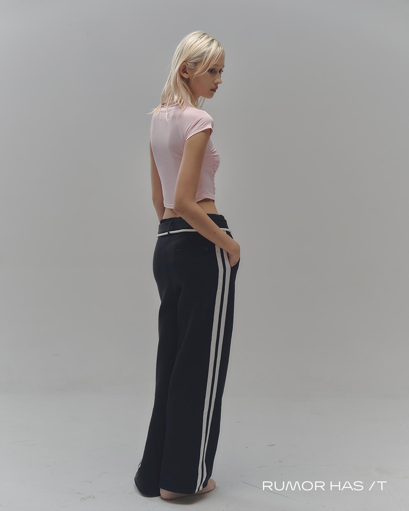 柔和的粉色搭配正面的立體抓皺設計