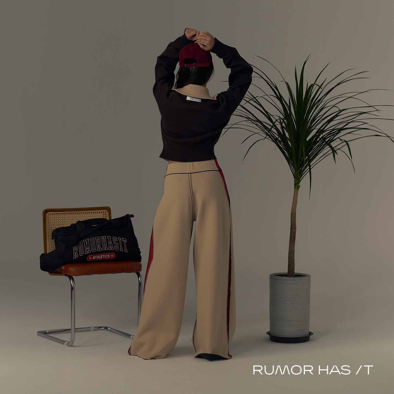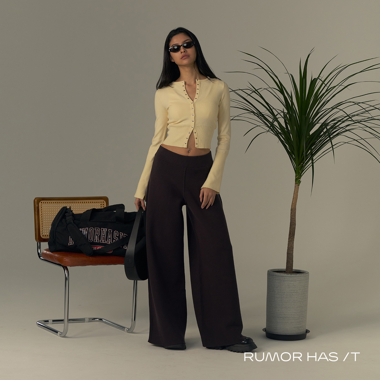 這次雙面穿針織長褲的版型選用高腰修身的直筒褲